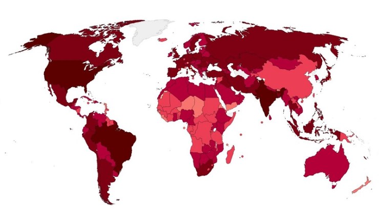 35 pays ont déclaré plus de 18 000 décès depuis le début de l'épidémie et comptent 91% des décès avec, dans l'ordre des pertes : (USA, Brésil, Inde, Mexique, Russie, Pérou, Indonésie, Royaume Uni, Italie, Colombie, Iran, France, Argentine, Allemagne, Afrique du Sud, Espagne, Pologne, Turquie, Ukraine, Roumanie, Philippines, Chili, Équateur, Hongrie, République Tchèque, Canada, Malaisie, Pakistan, Bangladesh, Belgique, Tunisie, Bulgarie, Irak, Vietnam.
