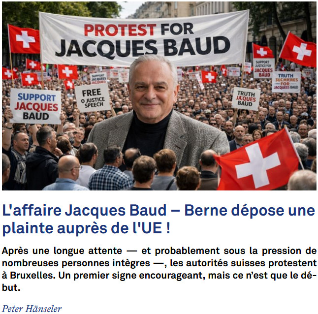 Jacques Baud est sur liste noire de l'UE avec interdiction de franchir la frontière belge*. Cet ancien officier suisse, prisonnier de fait, n'a plus accès à ses avoirs, ni aux services de transferts financiers, par décision des dirigeants de l'UE. Et toute personne désireuse de lui apporter son aide risque de se compromettre elle aussi aux yeux du Système en place. Aucune aide ne peut lui parvenir, même pas pour se nourrir. Donc si M. Baud ne dispose pas de cash PHYSIQUE, il lui est impossible de subvenir à ses besoins. Son histoire crée un précédent dans un espace appelé fallacieusement libéral et dont la réalité a tout du soviétisme pur et dur. Le sort de Jacques Baud est potentiellement celui de chacun d'entre nous.