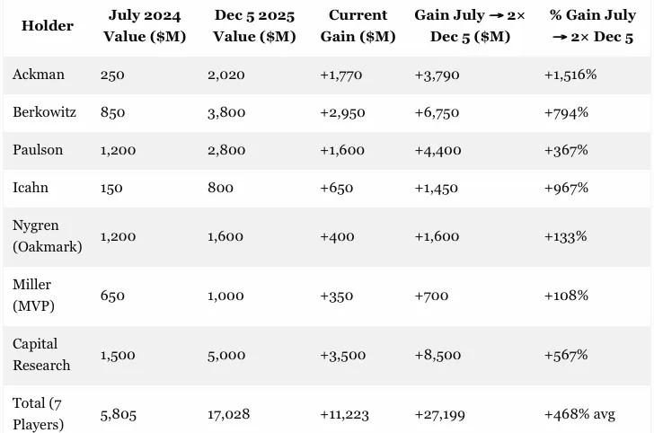 • All $ values combine common shares + junior preferred shares (Fannie Mae + Freddie Mac) for each holder, based on Q3 2025 estimates and Dec 5, 2025 OTC pricing.
