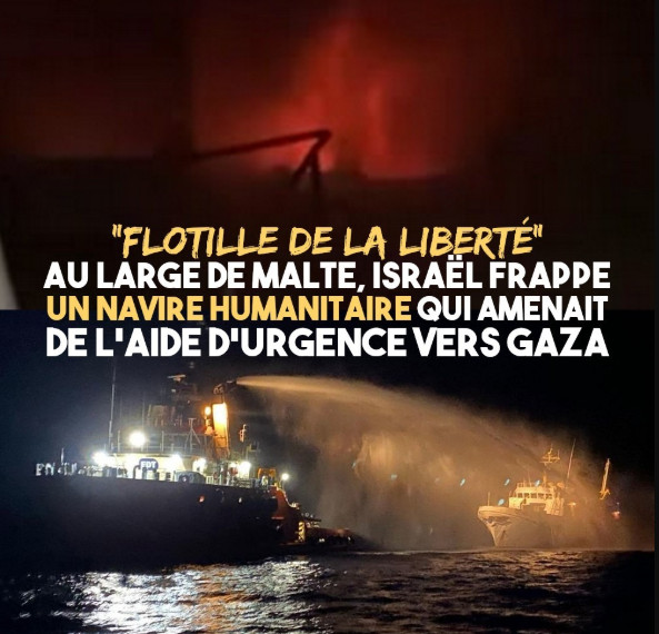 C'est dans ce contexte qu'une courageuse « Flottille de la liberté » s'est organisée : un convoi humanitaire par la mer, pour apporter en bateau les produits vitaux à Gaza. Mais là encore, Israël n'a pas hésité à attaquer cette flottille. Dans la nuit du jeudi au vendredi 2 mai, au large de Malte, dans les eau internationales, un bateau baptisé Conscience qui contenait de l'aide humanitaire a été frappé par des drones.