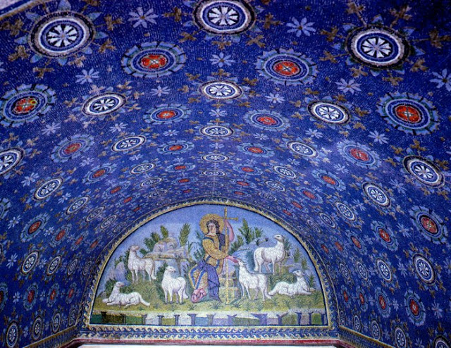 Bien sûr, ce n'est qu'une histoire, mais je vous mentionne les étoiles pour une raison. J'ai dit que Placidia ne nous a presque rien laissé en termes d'écrits. Du moins, rien qu'on puisse utiliser pour comprendre ce qu'elle pensait. Mais elle nous a laissé un message qui est peut-être encore plus clair qu'un journal écrit. C'est le mausolée qui porte son nom à Ravenne, et c'est là que l'on trouve un triomphe d'étoiles dans les mosaïques du plafond. De grandes étoiles brillantes et fantastiques qui nous rappellent un peu celles que Vincent van Gogh a peintes dans son célèbre tableau.