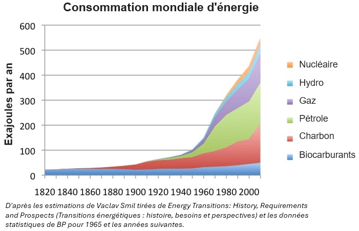 Ce dernier montre en effet un aplatissement : depuis les années 1980, la courbe s'aplatit. Le rêve d'une croissance solide s'est brisé contre un mur invisible. Aurions-nous atteint un plateau ? Certes, la consommation énergétique n'est qu'un proxy du progrès mais elle montre bien que même avec une forte augmentation de la population, elle s'est tassée. Peut-on tout mettre sur le dos d'une efficacité énergétique redoublée ?