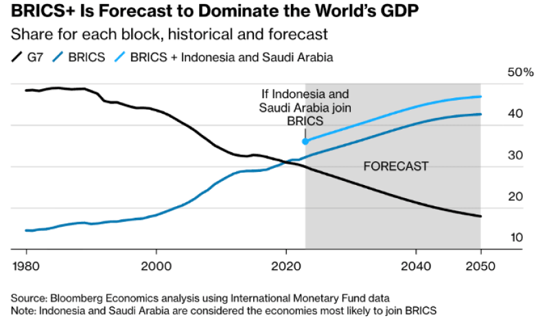La réponse des pays du Sud mondial - et pas seulement des pays du BRICS - a été rapide, comme le montre le graphique suivant de Bloomberg :