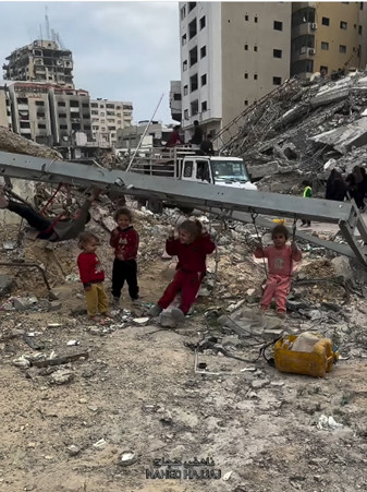Les enfants de Gaza jouent parmi les décombres de leurs maisons détruites dans la ville de Gaza, dans une tentative de capturer des moments d'enfance au milieu de la destruction et de la guerre. Capture d'écran de la vidéo publiée par nahed_hajjaj99.