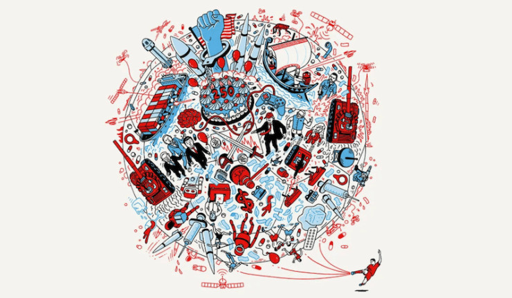 Derrière ces deux seringues - encore timides, encore en bas à droite, mais déjà incontournables - et ce poing américain mollasson et écorché, se cache Andrew Rae, illustrateur britannique du Peepshow Collective, qui a transformé la panique de The Economist en un véritable doudou géopolitique pour 2026.
