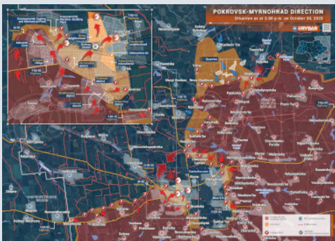 The Ukrainian army has lost control over the Pokrovsk / Myrnograd agglomeration. Russian forces had over months slowly enveloped the cities from the east and the west. The corridor leading out of it was put under Russian drone control. Any vehicle trying to pass through was attacked.